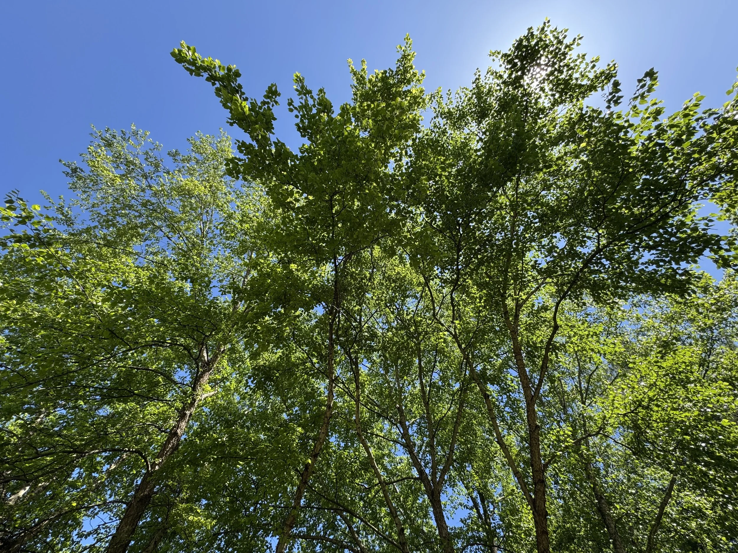 The beautiful expanse of my river birches as they reach to the sky.